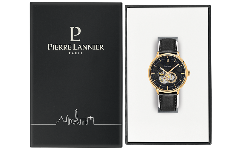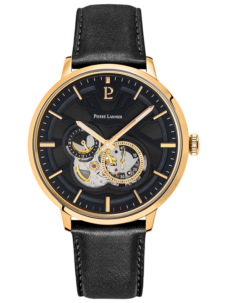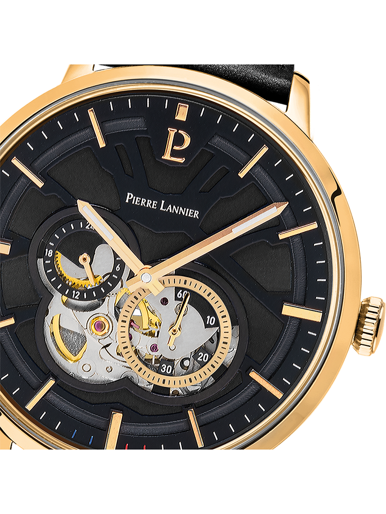 PIERRE LANNIER TRIO AUTOMATIC Black Leather Strap 335B233