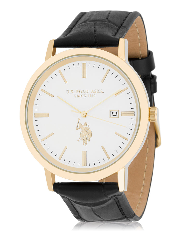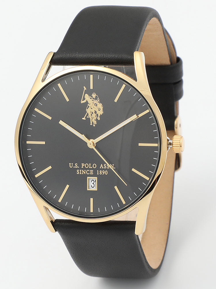 U.S. POLO COLIN Black Leather Strap USP7088YG