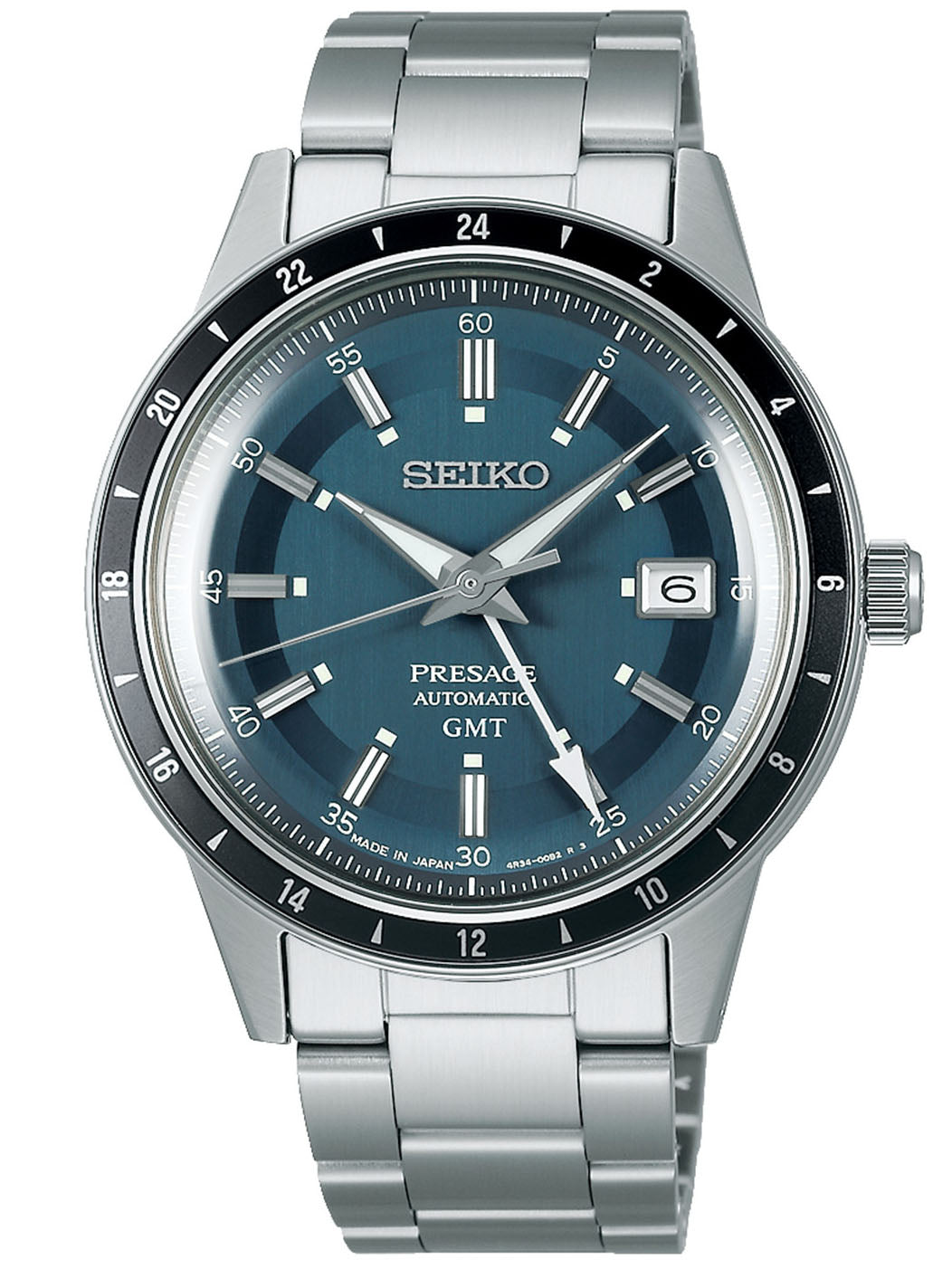 Seiko Presage 'Petrol Blue' Style 60s Road Trip GMT Silver Stainless Steel Bracelet SSK009J1