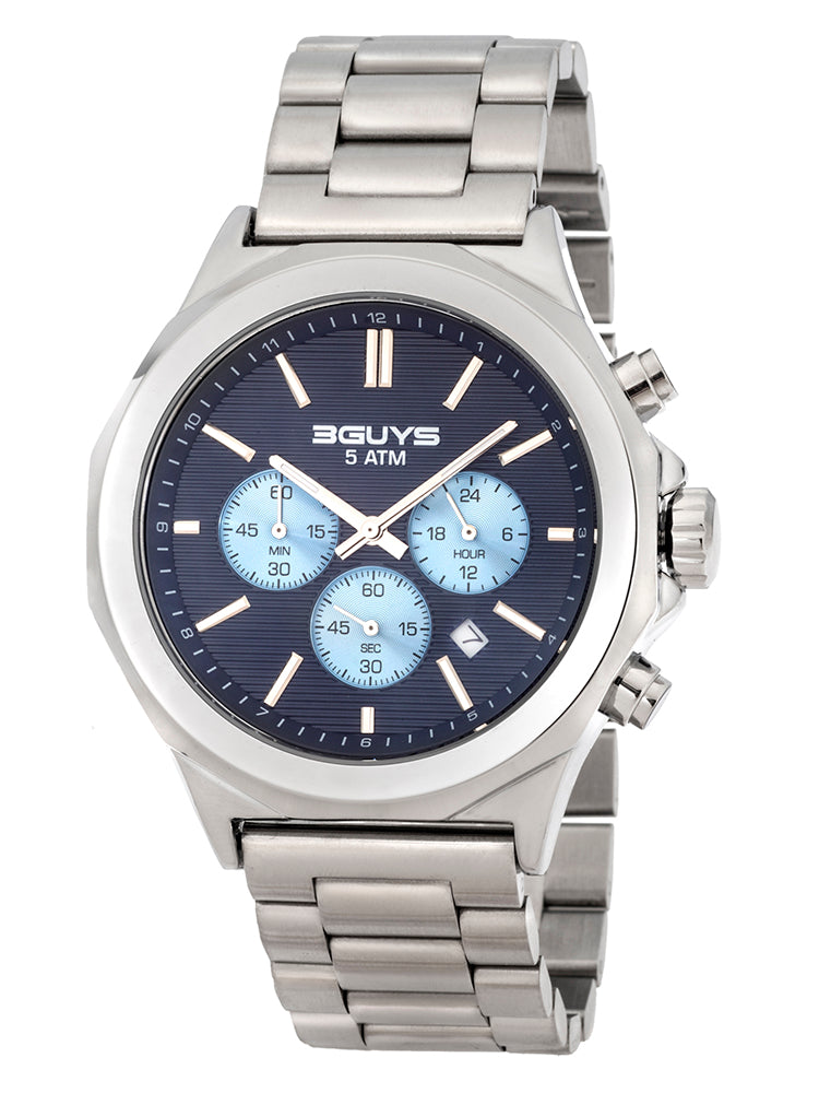 3GUYS Chronograph Silver Stainless Steel Bracelet 3G40021