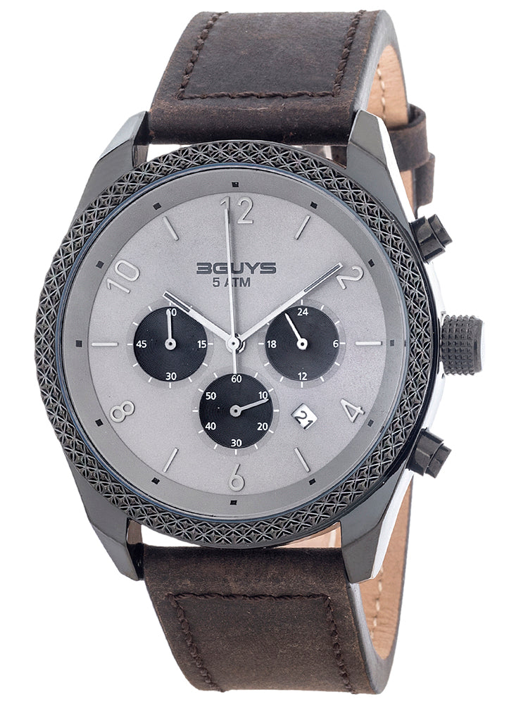 3GUYS Chronograph Brown Leather Strap 3G25006