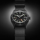 Η συλλογή Seiko 5 Sports Field δημιουργήθηκε με στρατιωτικό σχέδιο – αντλώντας έμπνευση από ένα στυλ που αρχικά ονομαζόταν «trench watch», που δημιουργήθηκε για να είναι στιβαρό και αξιόπιστο σε δύσκολες συνθήκες – απηχώντας τα χαρακτηριστικά του Seiko 5 Sports. Αυτό το Seiko 5 Sports «Deception» με το μαύρο καντράν και τη στεφάνη απογειώνει το design, με λειτουργία GMT που σας επιτρέπει να παρακολουθείτε μια δεύτερη ζώνη ώρας. Η ασημί στεφάνη, διαθέτει ένδειξη 24 ωρών και μεγάλο, πορτοκαλί δείκτη GMT. Ο βασικός σχεδιασμός και το μέγεθος παραμένουν ίδια με τα πρωτότυπα ρολόγια, διασφαλίζοντας ότι το στυλ σχεδίασης παραμένει διαχρονικό ενώ οι μηχανισμοί εξελίσσονται. Αν και είναι ένα στιβαρό αθλητικό ρολόι, αυτό το κομμάτι έχει μαύρο λουράκι από δέρμα μοσχαριού.