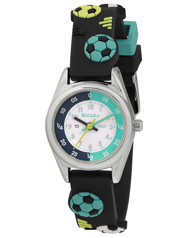 Το ρολόι Tikkers 3D για την εκμάθηση της ώρας διαθέτει μαύρο λουράκι σιλικόνης με τρισδιάστατα σχέδια και ευανάγνωστο καντράν σε μια πολύ ωραία συσκευασία δώρου.