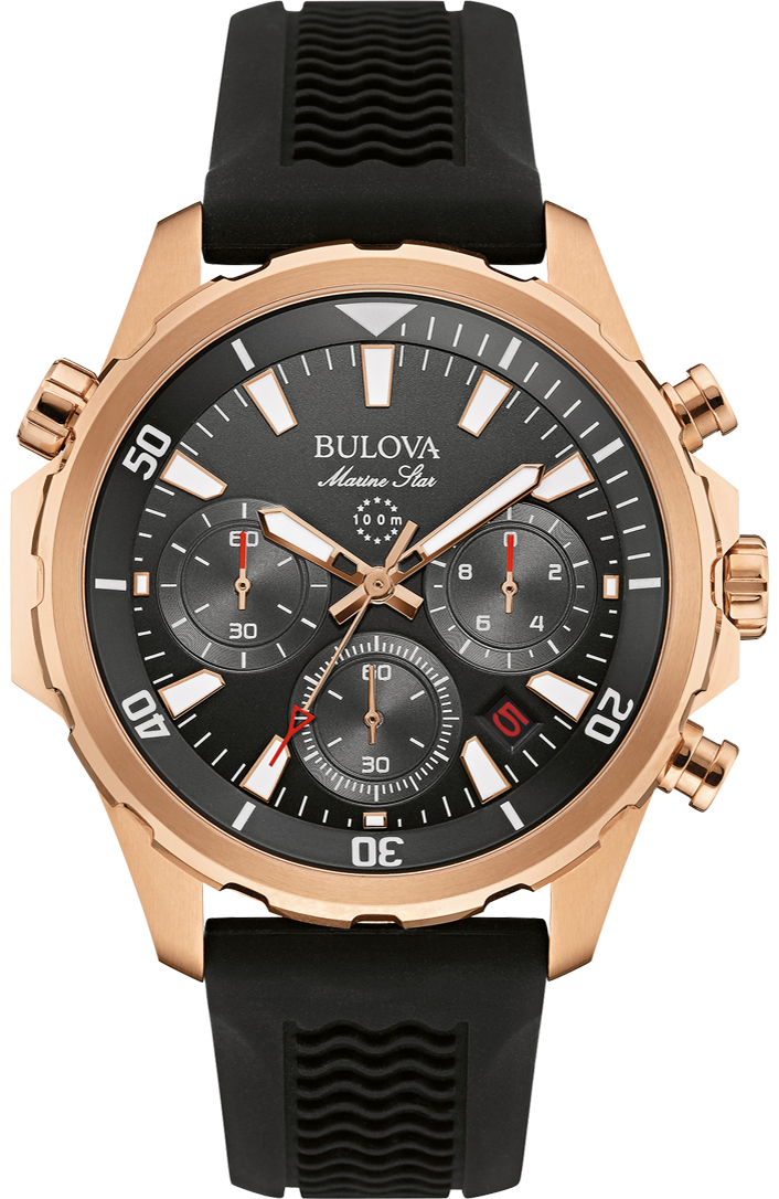 BULOVA Marine Star Rose Gold Black Rubber Strap 97B153