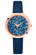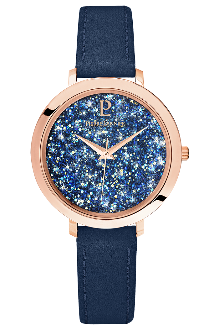 PIERRE LANNIER Crystals Rose Gold Blue Leather Strap 105J966