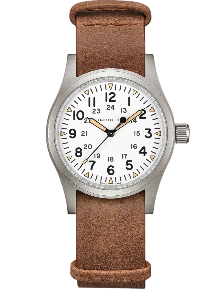HAMILTON Khaki Field Mechanical 38mm brown leather NATO strap H69439511