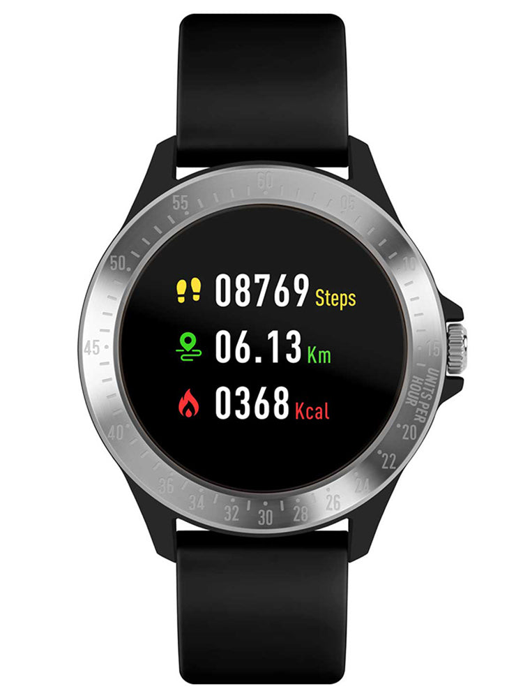 Harry Lime Silver bezel Step tracker Watch with Black Silicone strap HA07-2001