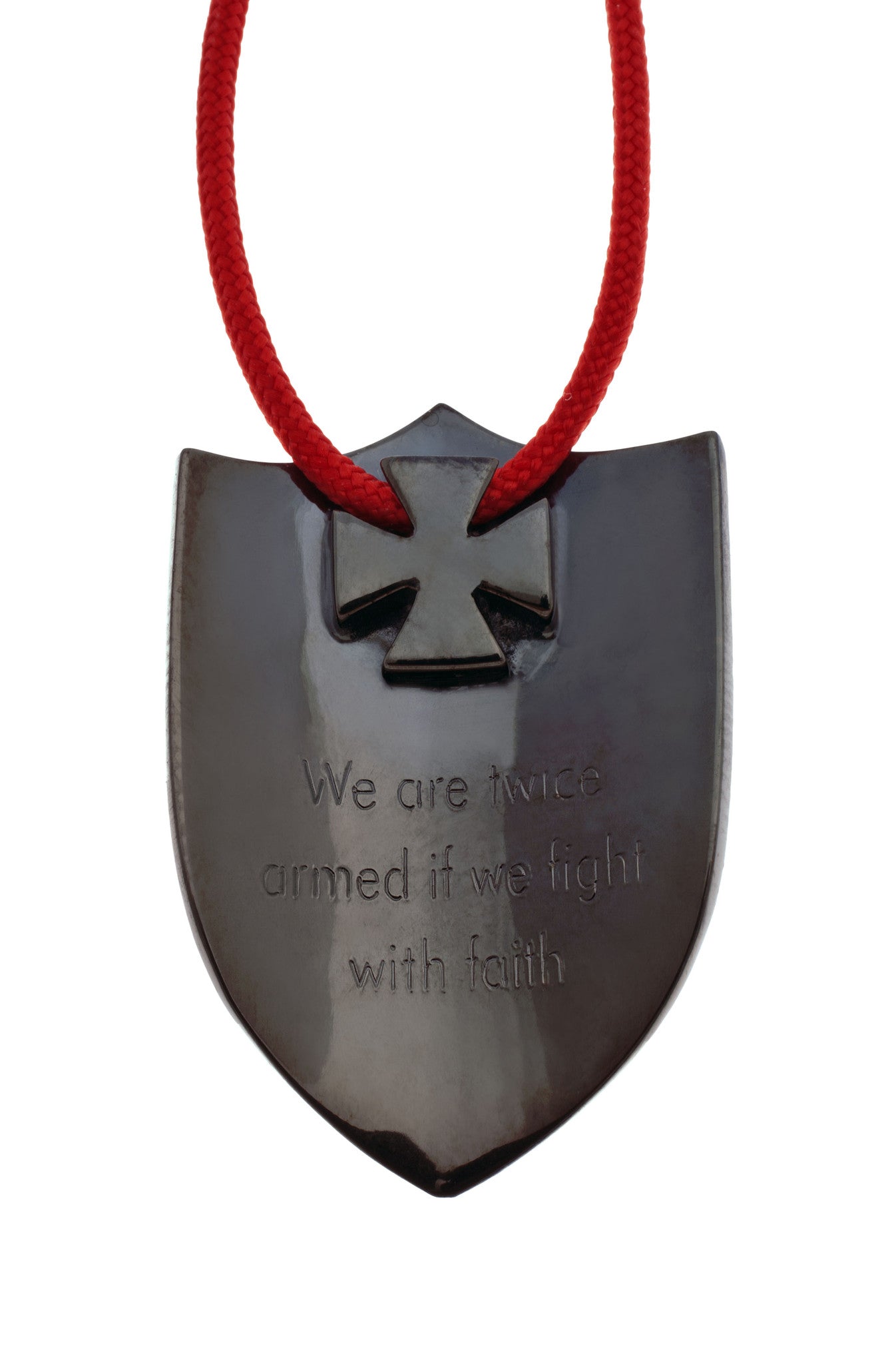 HONOR SP15 CROSS SHIELD PENDANT από ορείχαλκο (ruthenium plated, red and white enamel)