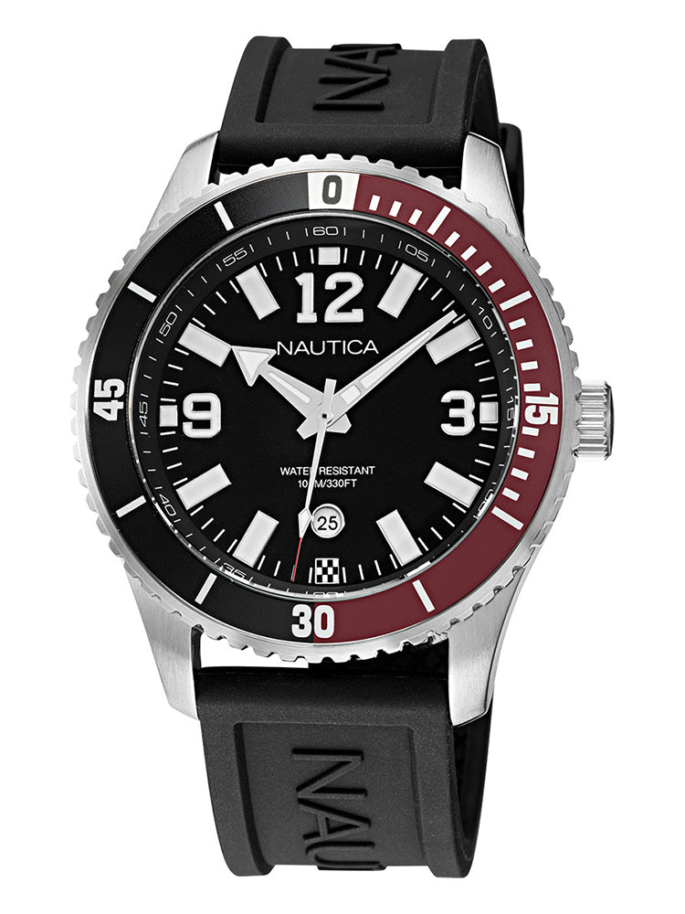 NAUTICA PACIFIC BEACH FLAG DATE Black Rubber Strap NAPPBS161