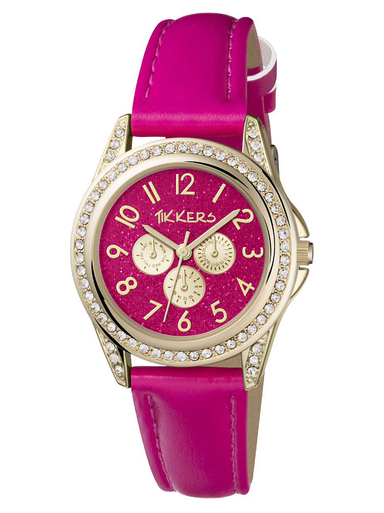 Ένα από τα αγαπημένα μας ρολόγια, με μοντέρνο καντράν σε τόνους ροζ χρυσού 34 mm και στεφάνη απο ζιργκόν συνοδεύεται από ένα αστραφτερό καντράν. Έχει ένα μαλακό, δερματένιο λουράκι με κούμπωμα με αγκράφα. Βρίσκεται σε συσκευασία δώρου, η οποία περιλαμβάνει και αποκλειστικά αυτοκόλλητα Tikkers! Όλα τα ρολόγια Tikkers έχουν εγγύηση ενός έτους.