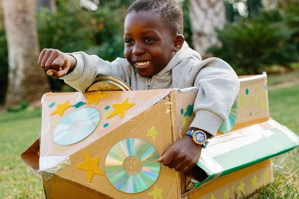 Ανακαλύψτε τη διαγαλαξιακή διασκέδαση με τα μπλε και κίτρινα εκπαιδευτικά ρολόγια για παιδιά – ένα αστρικό δώρο με πλανήτες, ρουκέτες και αστροναύτες.