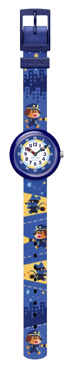 Ώρα για περιπέτειες! Το μπλε και κίτρινο ρολόι για παιδιά, με ληστές και αστυνομικούς, ένα εκπαιδευτικό δώρο που απαθανατίζει κάθε συναρπαστική στιγμή.