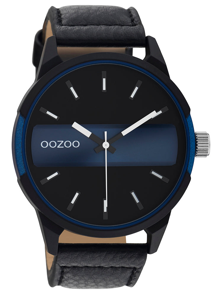 OOZOO Τimepieces Black Leather Strap C11003