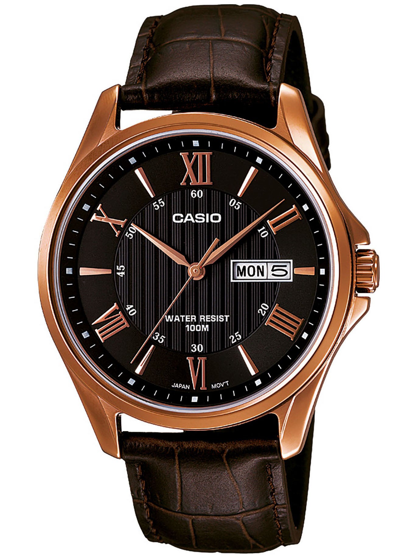 CASIO Collection Black Leather Strap MTP-1384L-1AVEF