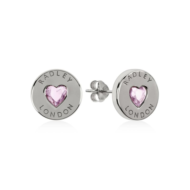 Γυναικεία σκουλαρίκια της εταιρείας Radley London σε στρογγυλό σχήμα με λογότυπο και καρδιά στο κέντρο, απο ασήμι.
