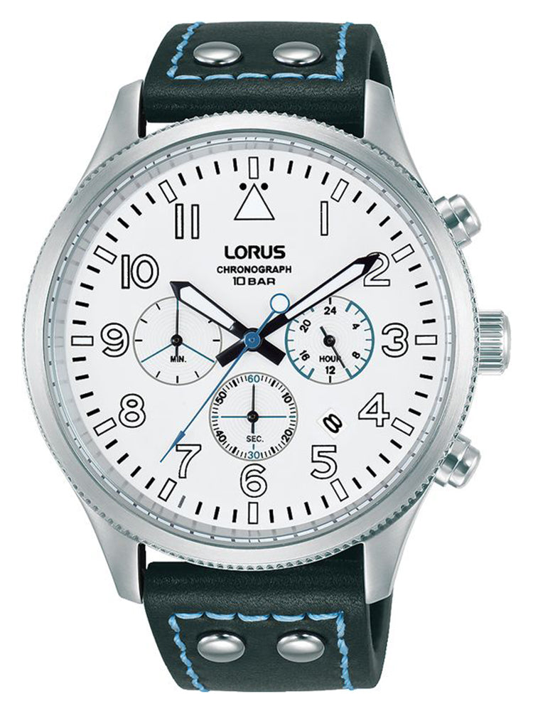 LORUS Sports Chronograph Black leather strap RT369JX9