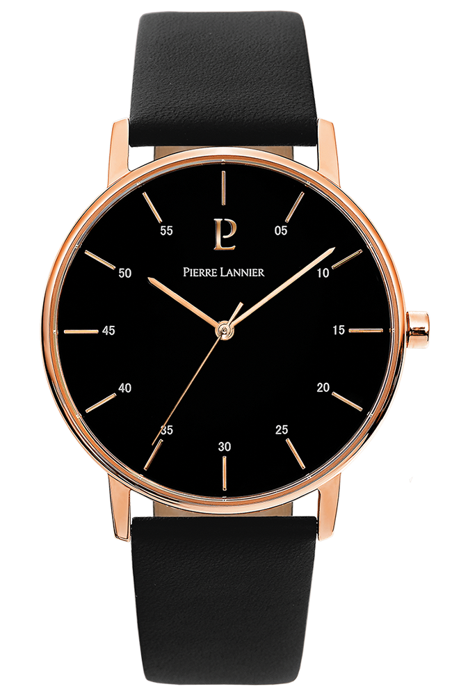 PIERRE LANNIER Rose Gold Black Leather Strap 203F033