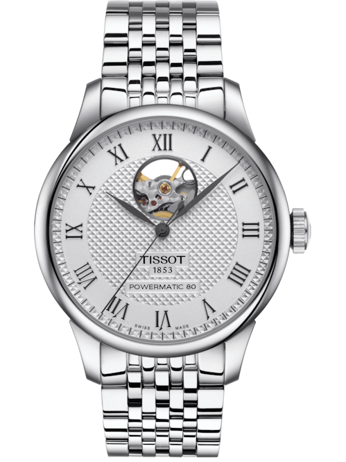 TISSOT Le Locle Powermatic 80 Open Heart Silver Stainless Steel Bracelet T0064071103302