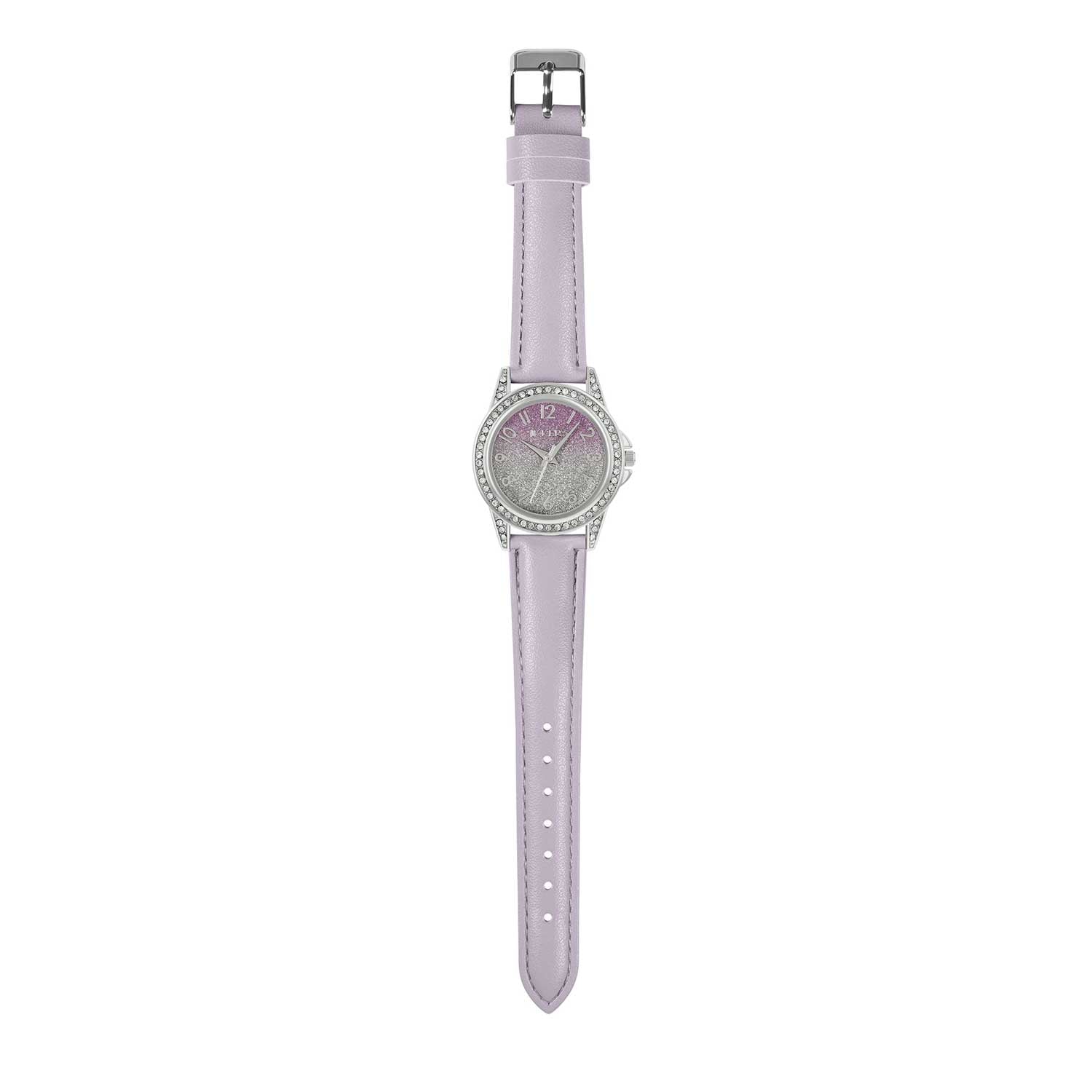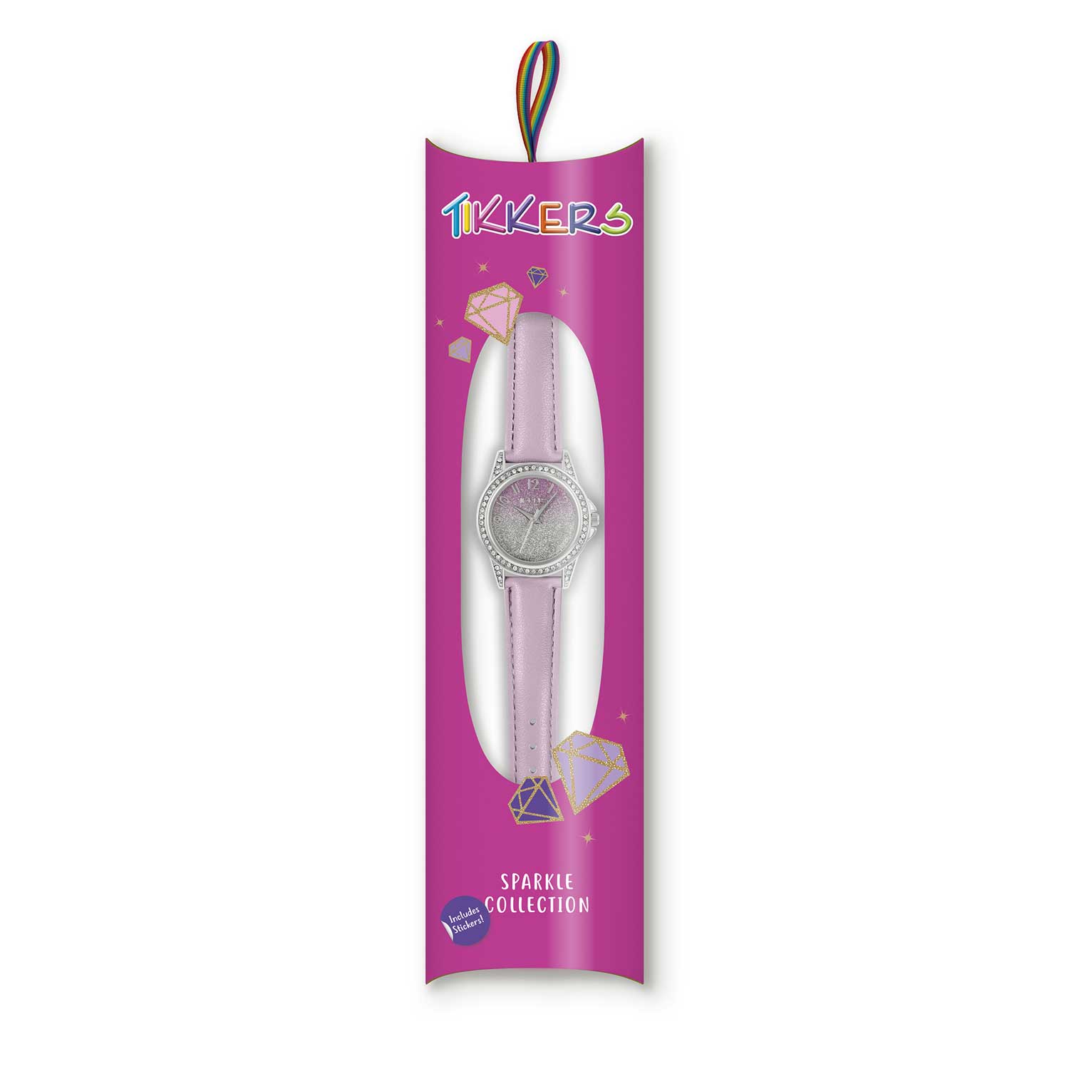 Σας παρουσιάζουμε το σούπερ αστραφτερό γκλίτερ ρολόι μας! Το ρολόι αυτό σε ασημί τόνους συμπληρώνεται από μια εντυπωσιακή πέτρινη στεφάνη. Το καντράν έχει ένα λιλά ombre glitter εφέ. Το ρολόι έχει φινίρισμα λιλά χρώματος από δερματίνη και αγκράφα σε ροζ χρυσό. Ειναι συσκευασμένο σε ένα αστραφτερό κουτί δώρου, το οποίο περιλαμβάνει και αποκλειστικά αυτοκόλλητα Tikkers! Όλα τα ρολόγια έχουν εγγύηση ενός έτους.