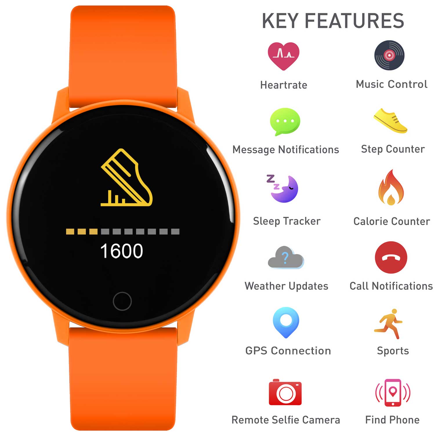 Reflex Active - Το πιο έξυπνο ρολόι! Παρουσιάζουμε το έξυπνο ρολόι Reflex Active Series 9 με έγχρωμη οθόνη και διάρκεια μπαταρίας έως και 7 ημέρες. Οι δυνατότητες περιλαμβάνουν: λήψη κλήσεων και ειδοποιήσεων μέσων κοινωνικής δικτύωσης, ανάγνωση μηνυμάτων και email, παρακολούθηση συγκεκριμένων δραστηριοτήτων (τρέξιμο/περπάτημα/ποδηλασία/αναρρίχηση) σε πραγματικό χρόνο, παρακολούθηση απόστασης/βημάτων/θερμίδων, ζωντανές ενημερώσεις καιρού από το ρολόι σας, έλεγχος κάμερας selfie, λειτουργία εύρεσης τηλεφώνου, παρακολούθηση ύπνου, και υπενθυμίσεις. Με στρογγυλή πορτοκαλί κάσα και ασορτί λουράκι σιλικόνης. Κάθε ρολόι πωλείται σε συσκευασία δώρου παρουσίασης Reflex Active με εγχειρίδιο οδηγιών, φορτιστή USB (σφραγισμένη επαναφορτιζόμενη μπαταρία) και 2 χρόνια εγγύηση κατασκευαστή. Ανθεκτικό στις γρατσουνιές και αδιάβροχο μόνο σε τυχαία επαφή με το νερό. Κατεβάστε τη δωρεάν εφαρμογή Reflex Active τώρα για να την εξερευνήσετε με περισσότερες λεπτομέρειες. Συμβατό με IOS και Android.