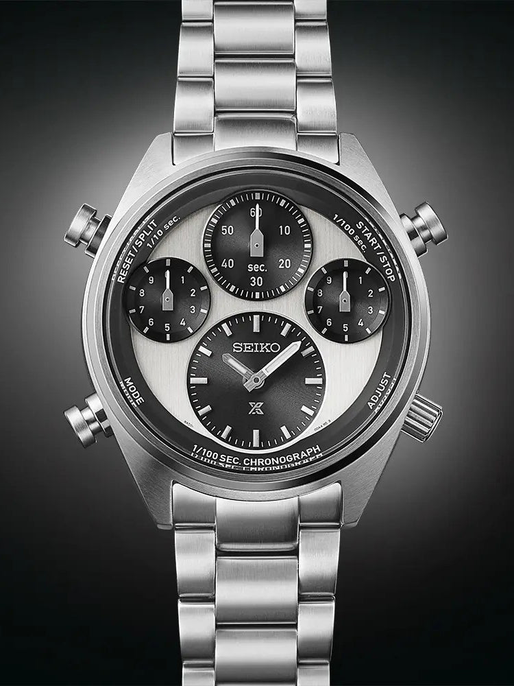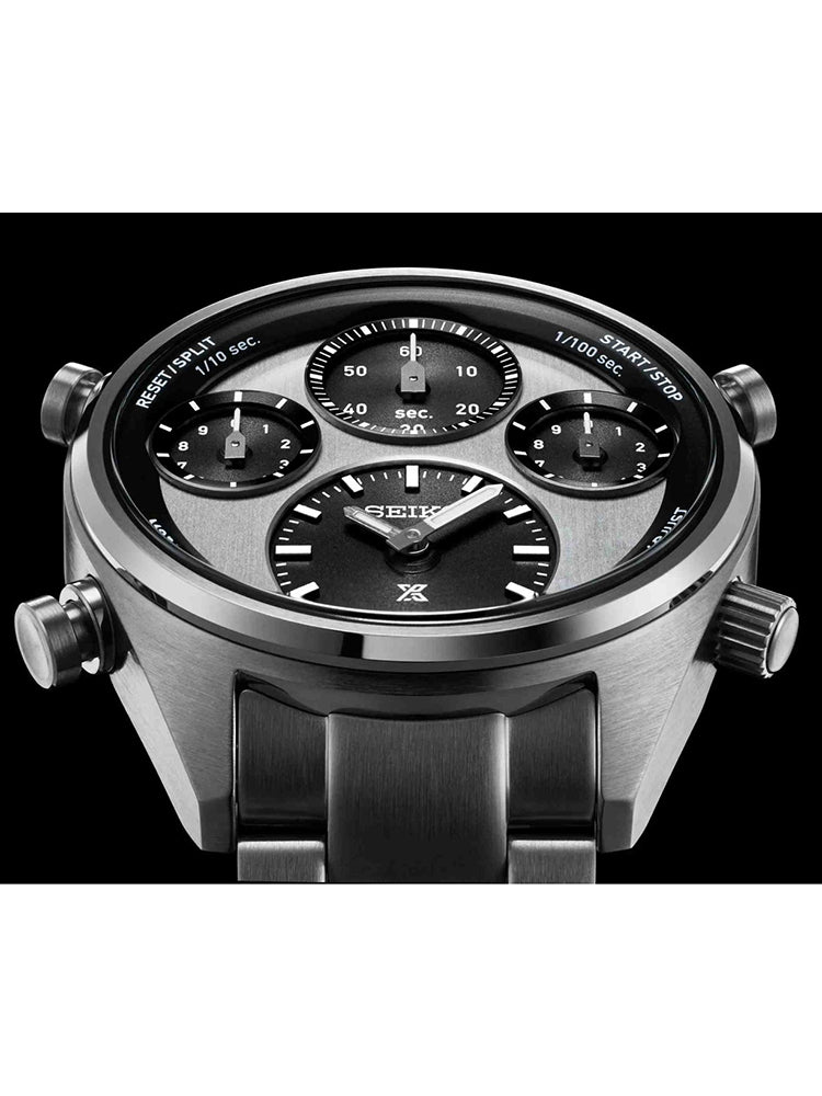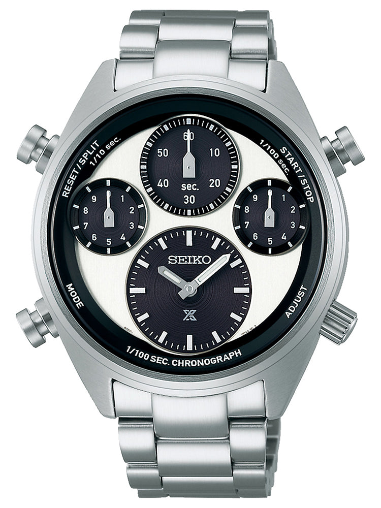 SEIKO Prospex 'Panda' One Hundredth of a Second Speedtimer Solar Silver Stainless Steel Bracelet SFJ001P1