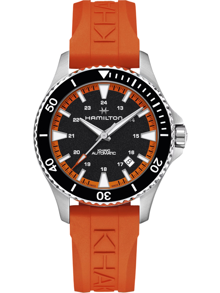 HAMILTON Khaki Navy Scuba Auto Orange Rubber Strap H82395331