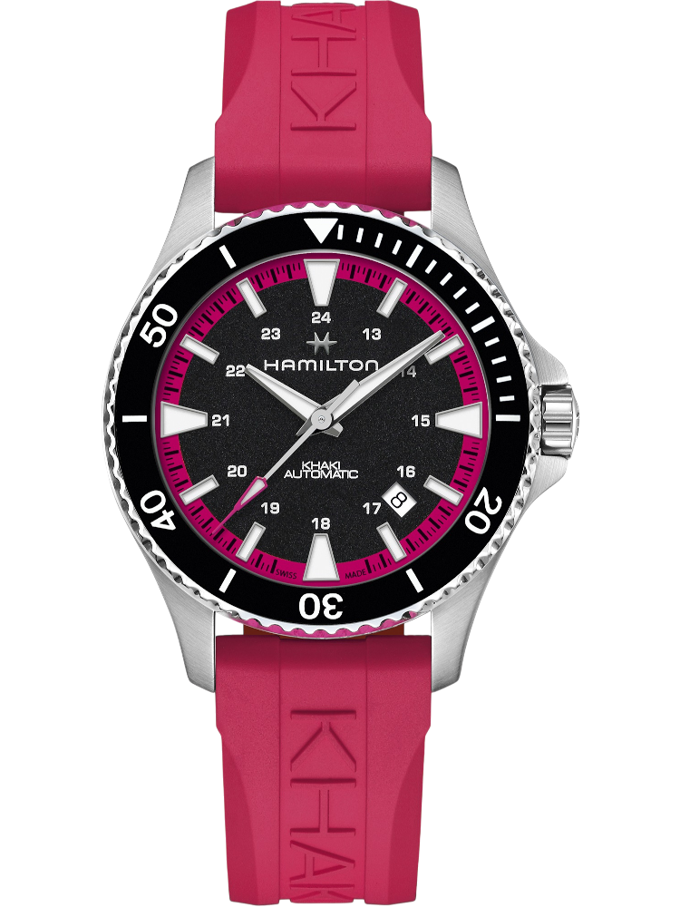 HAMILTON Khaki Navy Scuba Auto Pink Rubber Strap H82395330