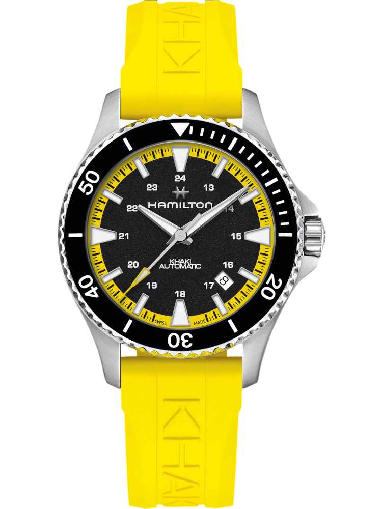 HAMILTON Khaki Navy Scuba Auto Yellow Rubber Strap H82395332