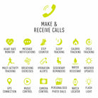 Bluetooth 5.0, WhatsApp, Απάντηση κλήσεων, Ασκήσεις αναπνοής, Ειδοποιήσεις social media, Ειδοποιήσεις για τον καιρό, Ειδοποίηση κλήσεων, Έλεγχος μουσικής, Ενημέρωση ενυδάτωσης, Έξυπνες ειδοποιήσεις και εμφάνιση μηνυμάτων SMS, και άλλα, Καταγραφή αθλητικής δραστηριότητας, Λειτουργία εύρεσης ρολογιού, Λειτουργία εύρεσης τηλεφώνου, Μέτρηση απόστασης, Μέτρηση θερμίδων, Μετρητής βημάτων, Παρακολούθηση ύπνου, Προσφέρει λειτουργία υπενθύμισης έμμηνου κύκλου για τις κυρίες, Σύνδεση GPS, Χειρισμός κάμερας από απόσταση