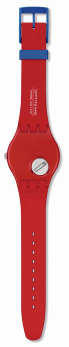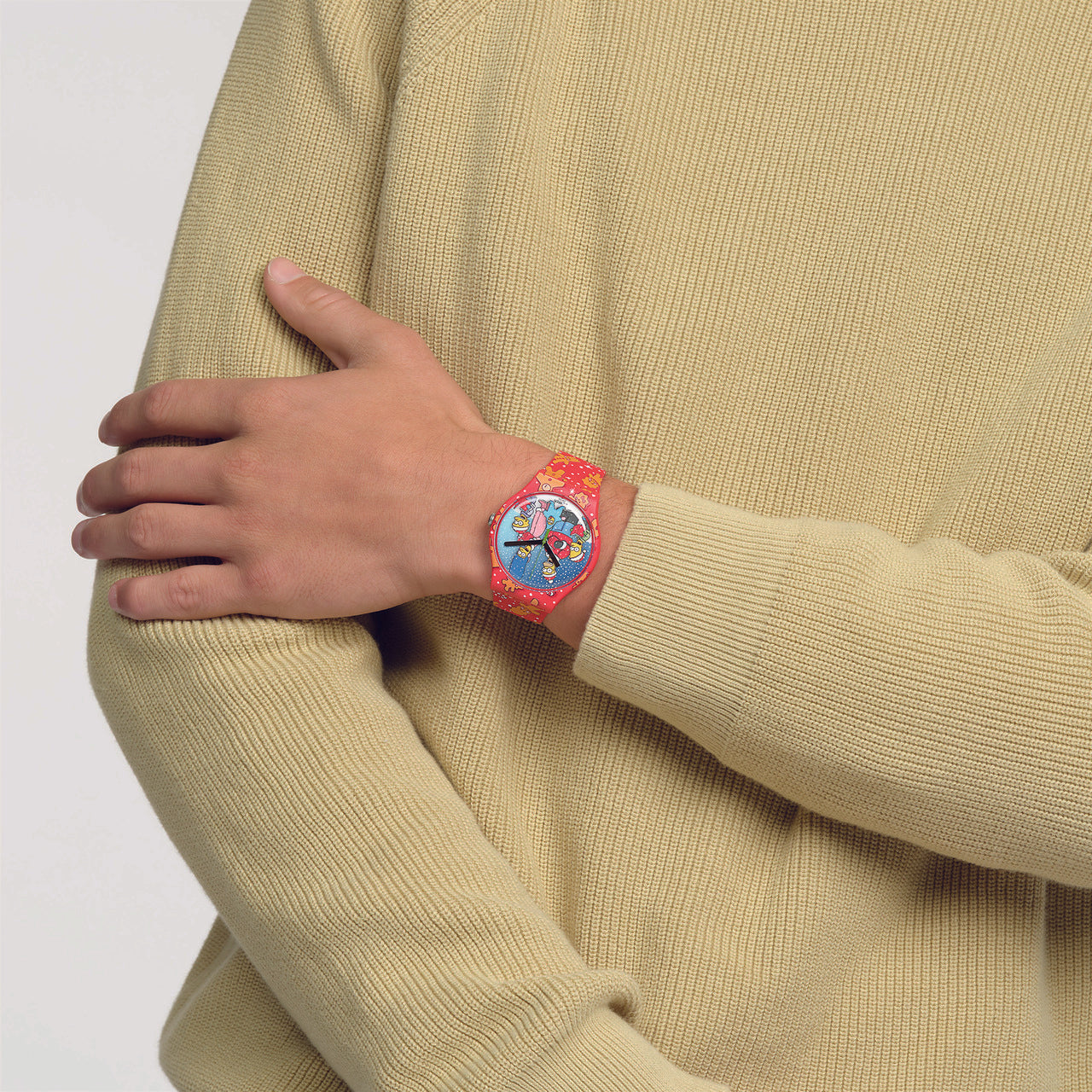 Αυτό το εορταστικό κόκκινο Simpsons Holiday Special, μέρος της συλλογής της συνεργασίας Simpsons, διαθέτει καντράν με πολύχρωμη εκτύπωση με όλα τα μέλη της οικογένειας The Simpsons. Το κόκκινο λουράκι με εκτύπωση περιλαμβάνει μπλε θηλάκι και κούμπωμα.
