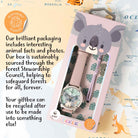 Τα ρολόγια έχουν καντράν με θέμα ζώα , η κάσα είναι κατασκευαμένη από 100% ανακυκλωμένο μέταλλο, τα λουράκια είναι κατασκευασμένα από βιώσιμα υλικά και οι βαφές που έχουν χρησιμοποιηθεί έχουν ως βάση το νερό.