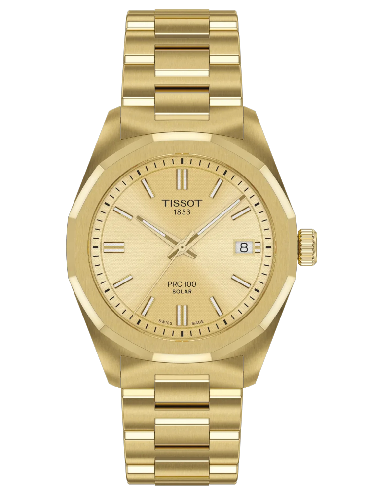 TISSOT PRC 100 Solar 34mm Gold STAINLESS STEEL BRACELET T1518223302100