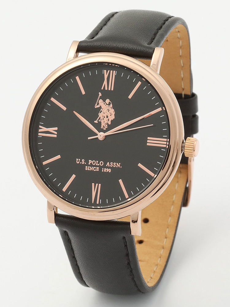 U.S. POLO EZRA Black Leather Strap USP4907RG