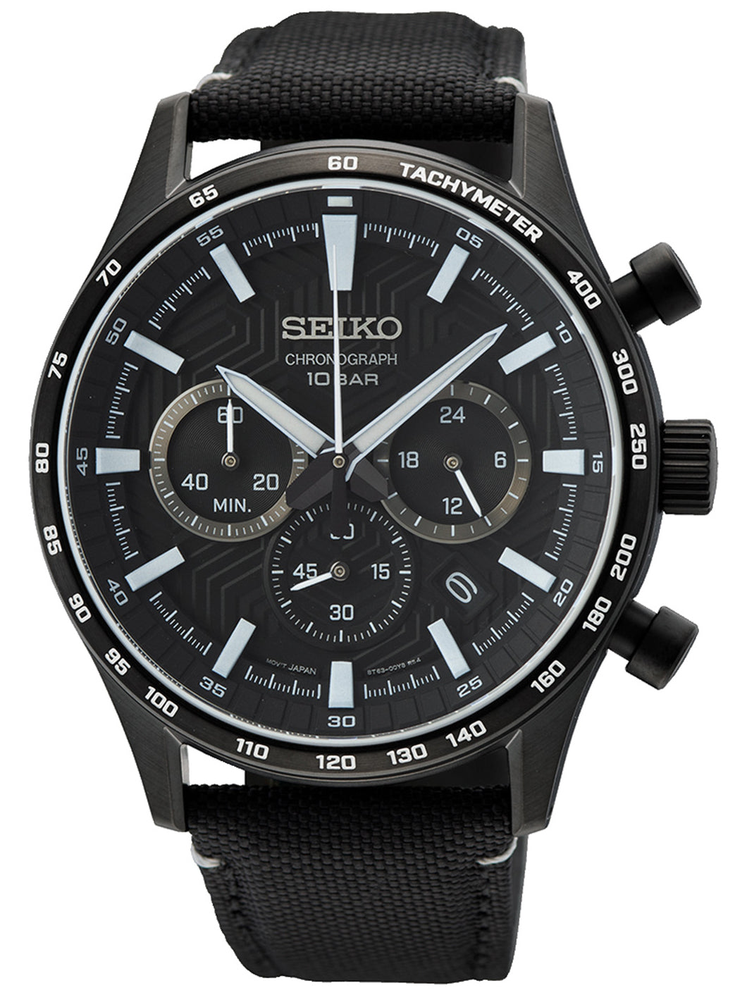 SEIKO Conceptual Chronograph Black Leather Strap SSB417P1