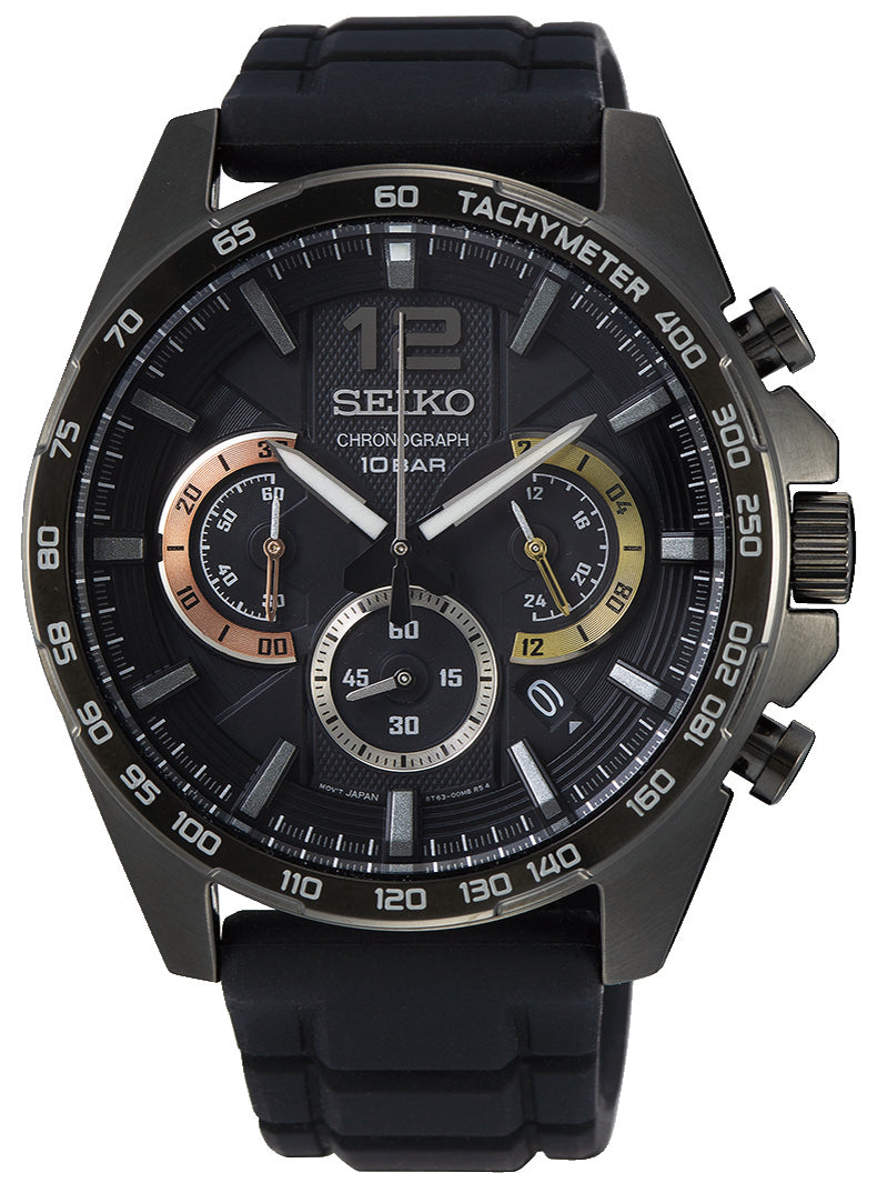 SEIKO Chonograph Black Silicone Strap SSB349P1
