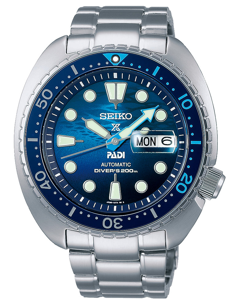 SEIKO Prospex 'Great Blue' Turtle Scuba PADI Special Edition Automatic Silver Stainless Steel Bracelet SRPK01K1F