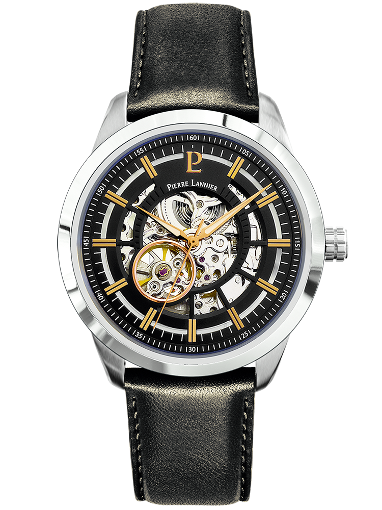 PIERRE LANNIER AUTOMATIC Black Leather Strap 329F133