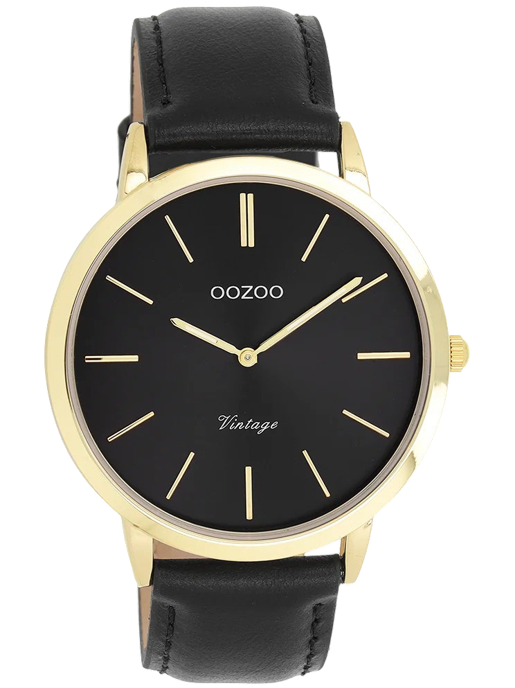 OOZOO Vintage 42mm Black Leather Strap C20389