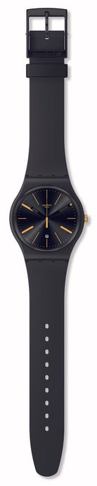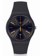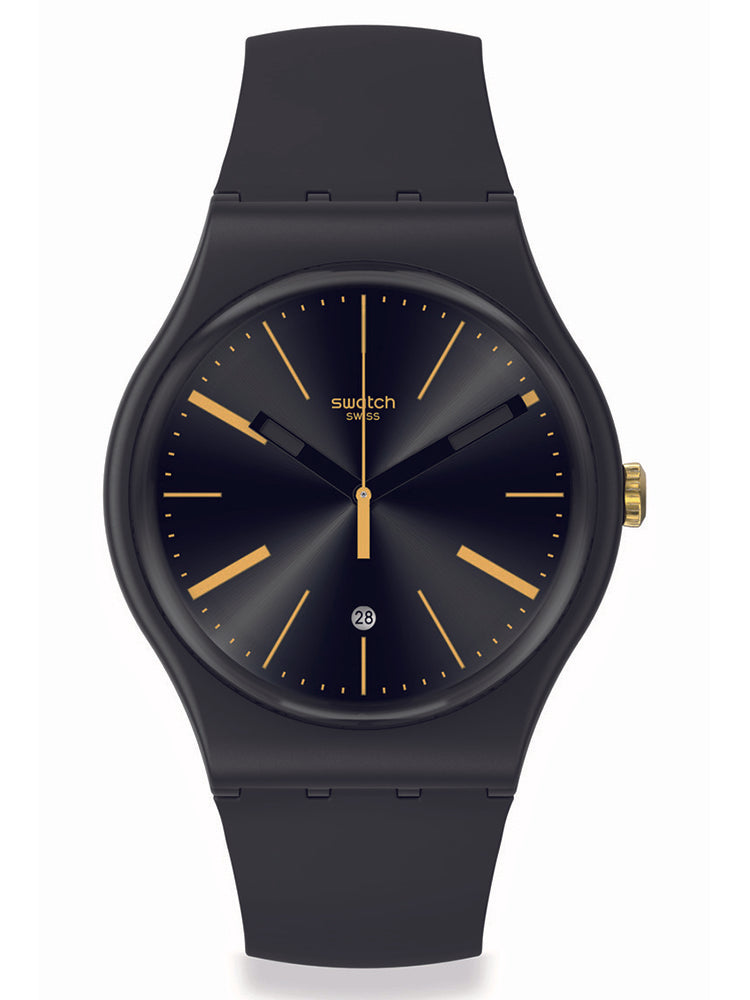 Αυτό το ρολόι διαθέτει μαύρο sun-brushed καντράν με χρυσαφί ενδείξεις, μαύρους ωροδείκτες και λεπτοδείκτες που λάμπουν στο σκοτάδι και κάσα και τζάμι βιολογικής προέλευσης. Το μαύρο ματ λουράκι βιολογικής προέλευσης με το ταιριαστό θηλάκι και το κούμπωμα ολοκληρώνουν το ξεχωριστό look αυτού του ρολογιού.