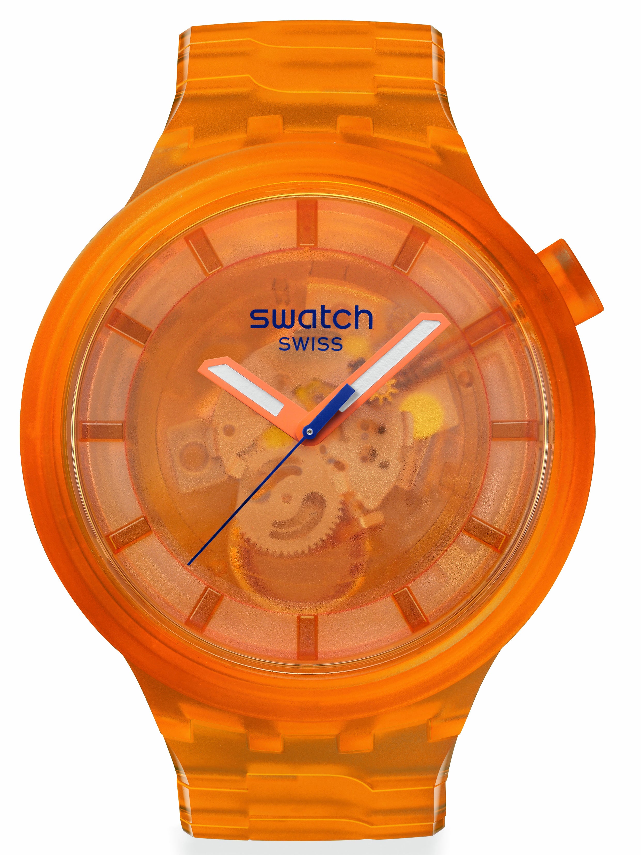Αυτό το μεγάλου μεγέθους πορτοκαλί ρολόι διαθέτει εξ’ ολοκλήρου διαφανές look, από την κάσα, το καντράν και τη στεφάνη βιολογικής προέλευσης μέχρι το μπρασελέ βιολογικής προέλευσης με το κούμπωμα τύπου πεταλούδα. Το διαφανές πορτοκαλί καντράν βιολογικής προέλευσης επιτρέπει να φαίνεται ο μηχανισμός, ενώ ο πορτοκαλί ωροδείκτης και λεπτοδείκτης που λάμπουν στο σκοτάδι και ο αντιθετικός μπλε δείκτης δευτερολέπτων δείχνουν την ώρα κάτω από το τζάμι βιολογικής προέλευσης.