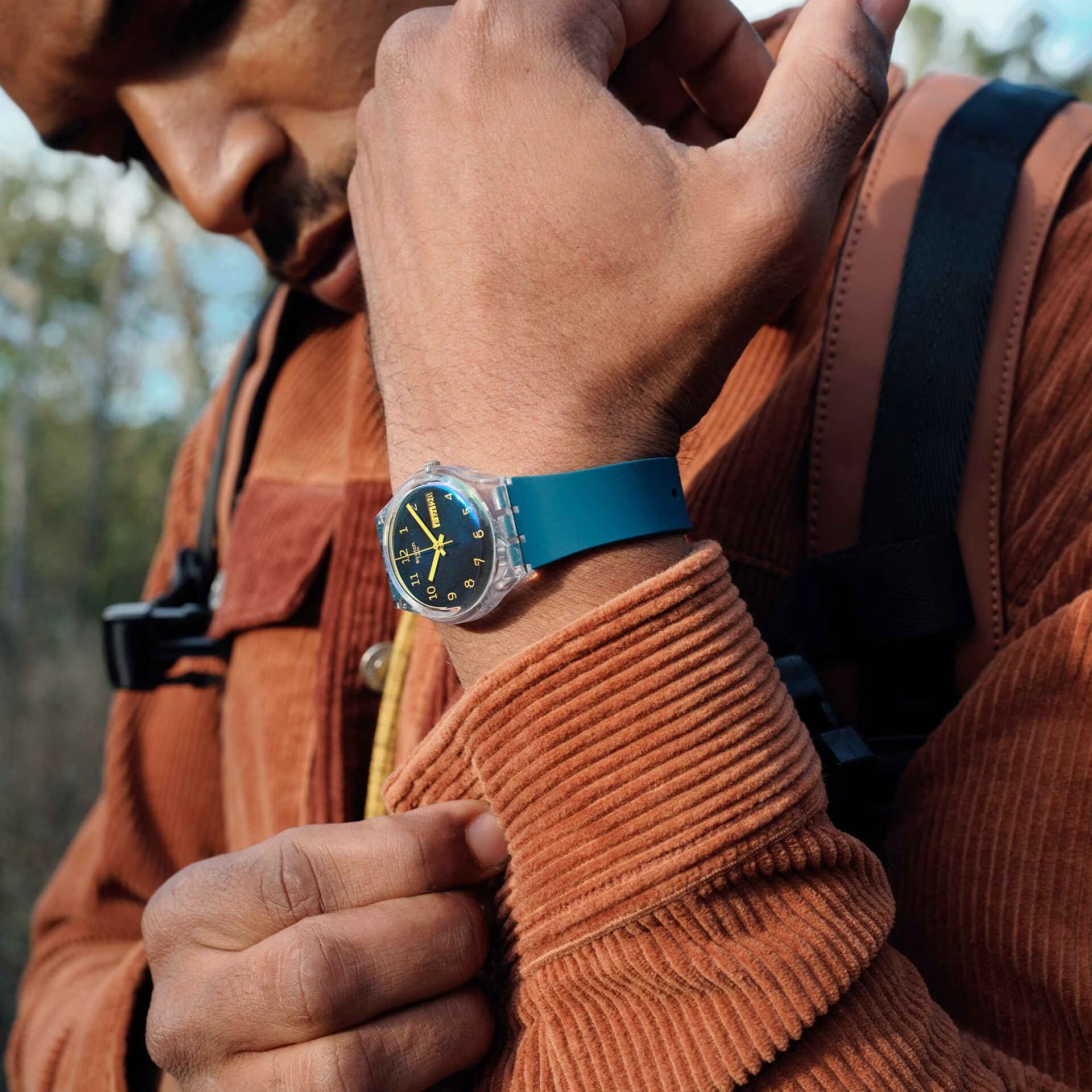 Το καντράν αυτού του ρολογιού, σε σκούρο γαλαζοπράσινο, καλύπτεται από τζάμι Solar Spectrum και διαυγή κάσα βιολογικής προέλευσης. Οι πορτοκαλί δείκτες δείχνουν την ώρα, ενώ στο σημείο ώρα 3 υπάρχει ένδειξη ημέρας/ημερομηνίας.