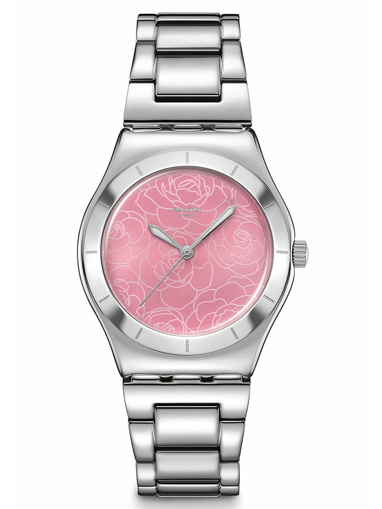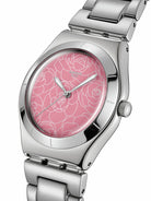 Αυτό το κομψό ρολόι από ανοξείδωτο ατσάλι διαθέτει ροζ sun-brushed καντράν με τυπωμένο λευκό μοτίβο λουλουδιών, ασημί ωροδείκτη και λεπτοδείκτη που λάμπουν στο σκοτάδι και ασημί δείκτη δευτερολέπτων. Το ρολόι διαθέτει γυαλισμένη κάσα από ανοξείδωτο ατσάλι και ταιριαστή στεφάνη με χαραγμένες ενδείξεις ώρας. Το look ολοκληρώνεται με το γυαλισμένο μπρασελέ από ανοξείδωτο ατσάλι με κούμπωμα τύπου πεταλούδα.