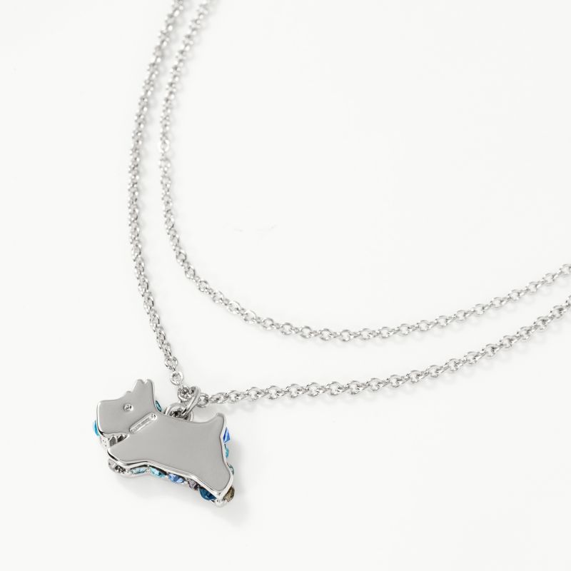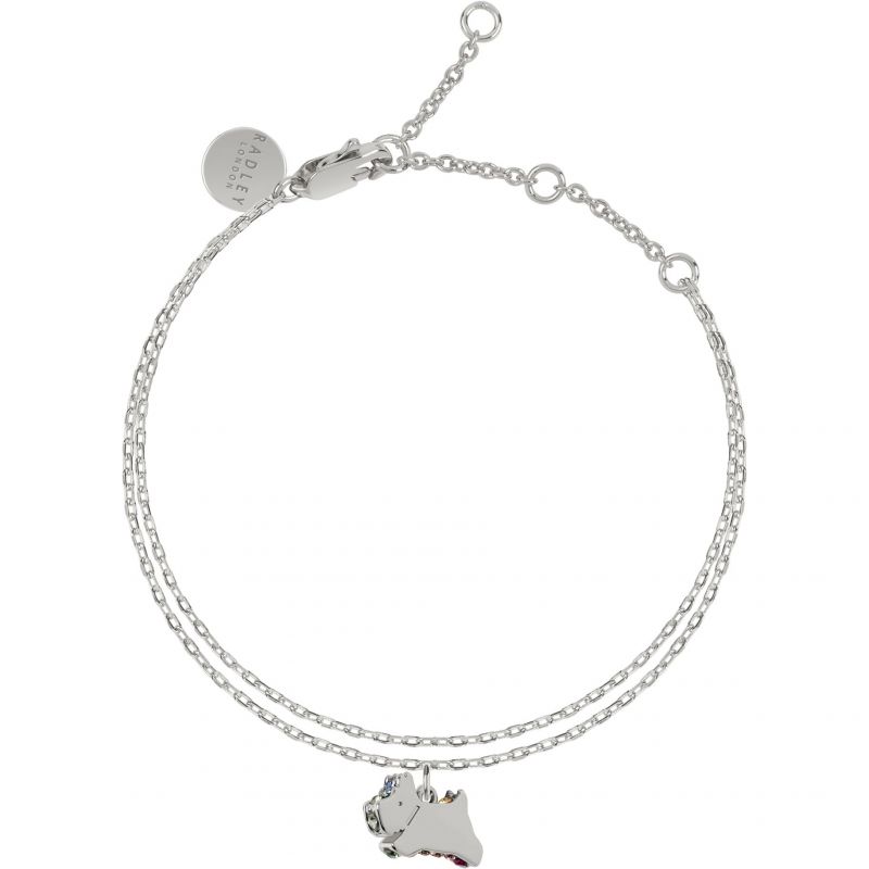 Γυναικείο βραχιόλι της εταιρείας Radley London απο ατσάλι με διπλή αλυσίδα και φιγούρα σκύλου, διακοσμημένη με πολύχρωμα ζιργκόν.