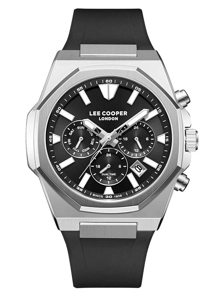 LEE COOPER Dual Time Black Rubber Strap LC08313.351
