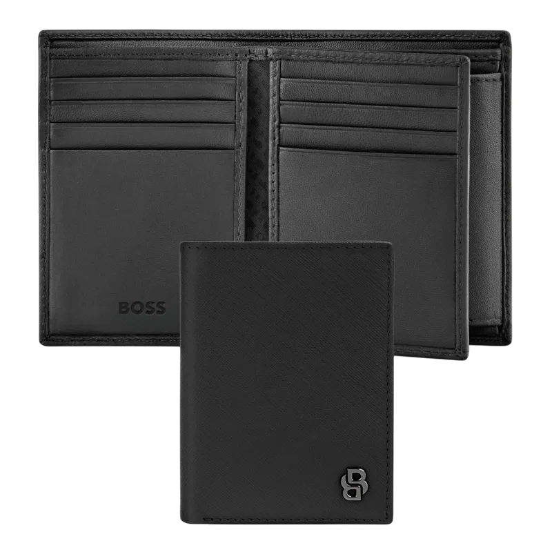 HUGO BOSS Card holder with flap and money pocket Double B Saffiano Black ΔΕΡΜΑΤΙΝΟ ΠΟΡΤΟΦΟΛΙ HLG526A