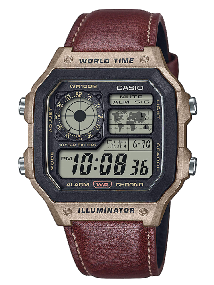 CASIO Collection Brown Leather Strap AE-1200WHL-5AV