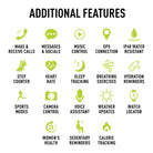 ΛΕΙΤΟΥΡΓΙΕΣ: Bluetooth 5.0, WhatsApp, Απάντηση κλήσεων, Ασκήσεις αναπνοής, Ειδοποιήσεις social media, Ειδοποιήσεις για τον καιρό, Ειδοποίηση κλήσεων, Έλεγχος μουσικής, Ενημέρωση ενυδάτωσης, Έξυπνες ειδοποιήσεις και εμφάνιση μηνυμάτων SMS και άλλα, Καταγραφή αθλητικής δραστηριότητας, Λειτουργία εύρεσης ρολογιού, Λειτουργία εύρεσης τηλεφώνου, Μέτρηση απόστασης, Μέτρηση θερμίδων, Μετρητής βημάτων, Παρακολούθηση ύπνου, Προσφέρει λειτουργία υπενθύμισης έμμηνου κύκλου για τις κυρίες, Σύνδεση GPS, Χειρισμός κάμερας από απόσταση