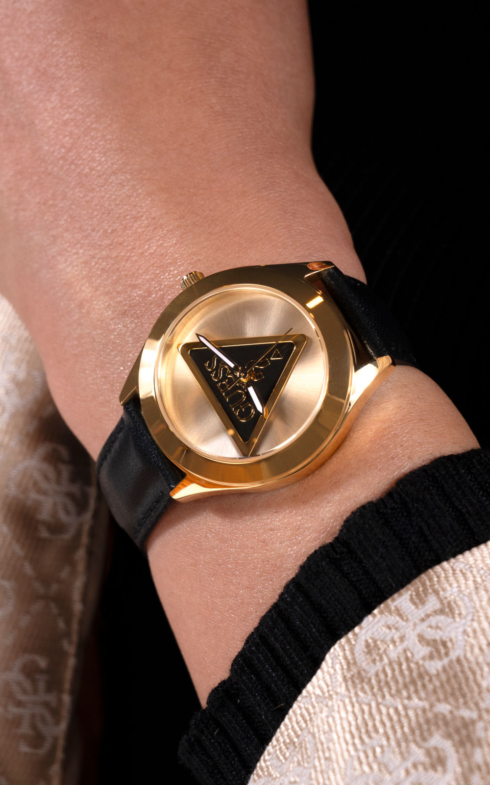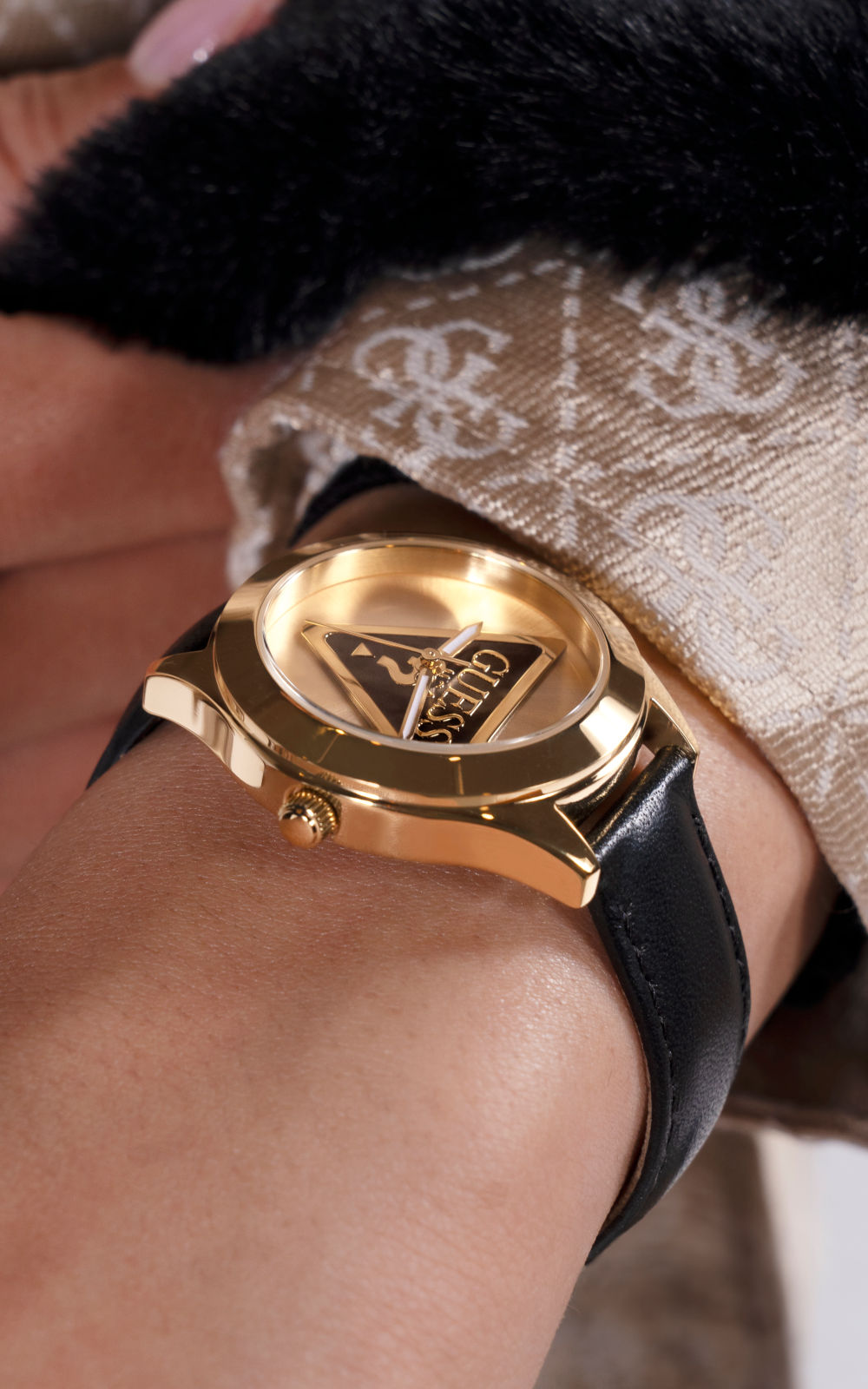 GUESS TRI PLAQUE Black Leather Strap GW0744L2