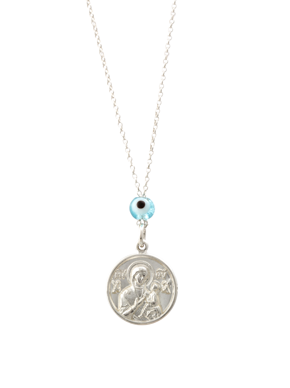 Φυλακτό αυτοκινήτου από ασήμι 925 στου οποίου την μία όψη εικονίζεται ο Άγιος Χριστόφορος (προστάτης των οδηγών) και στην άλλη η Παναγία.