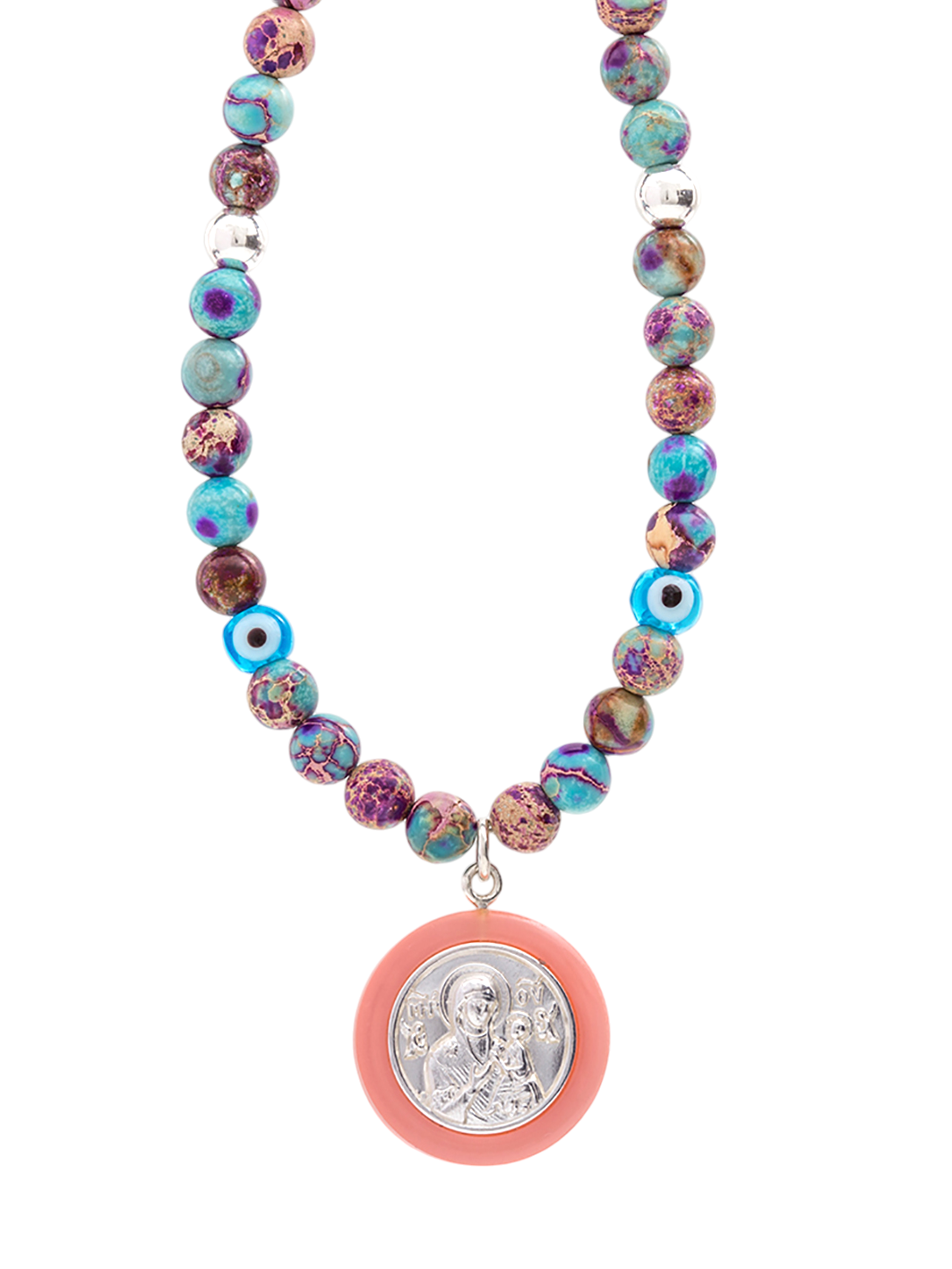 Φυλακτό αυτοκινήτου από ασήμι 925 στου οποίου την μία όψη εικονίζεται ο Άγιος Χριστόφορος (προστάτης των οδηγών) και στην άλλη η Παναγία.